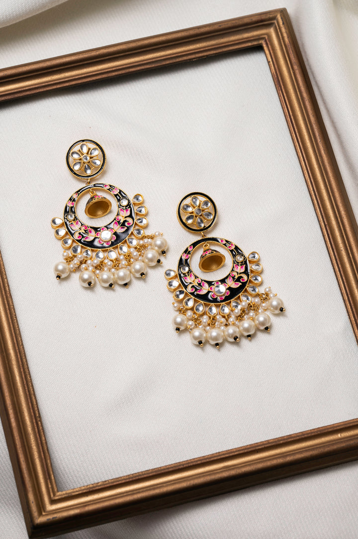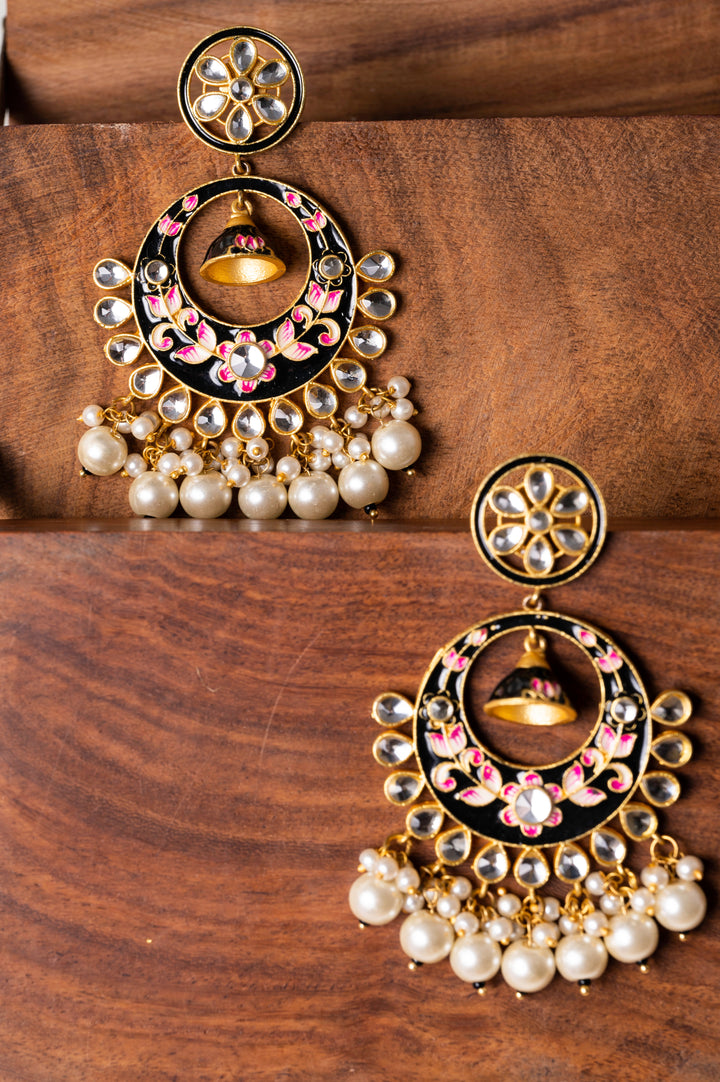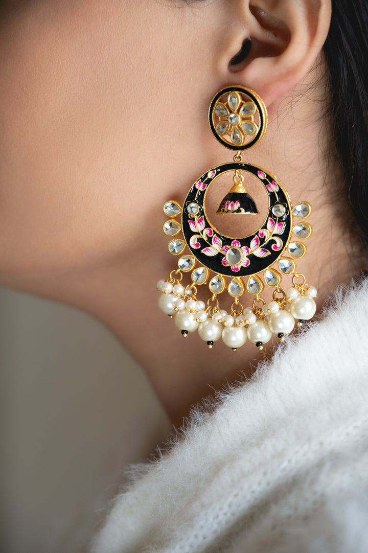 Experience the elegant beauty and traditional craftsmanship of Shulini's black meenakari chandbalis. With intricate pink detailing, these chandbalis add a touch of color and sophistication to any outfit. Made with high-quality materials, these earrings are a luxurious addition to your jewelry collection.