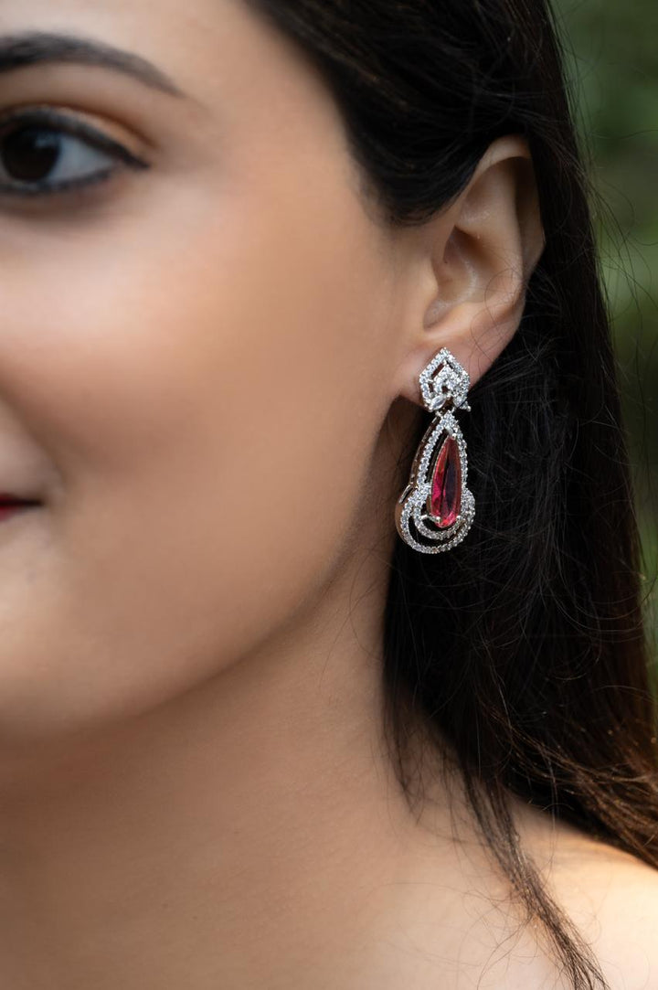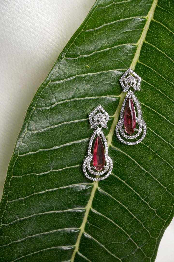 Experience the epitome of grace and charm with Adina! These magenta earrings, adorned with American diamonds, are the perfect statement piece to elevate any outfit. Embody elegance and confidence with Adina.