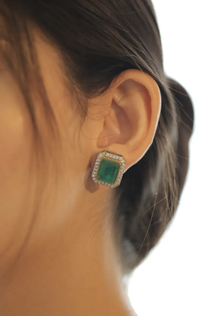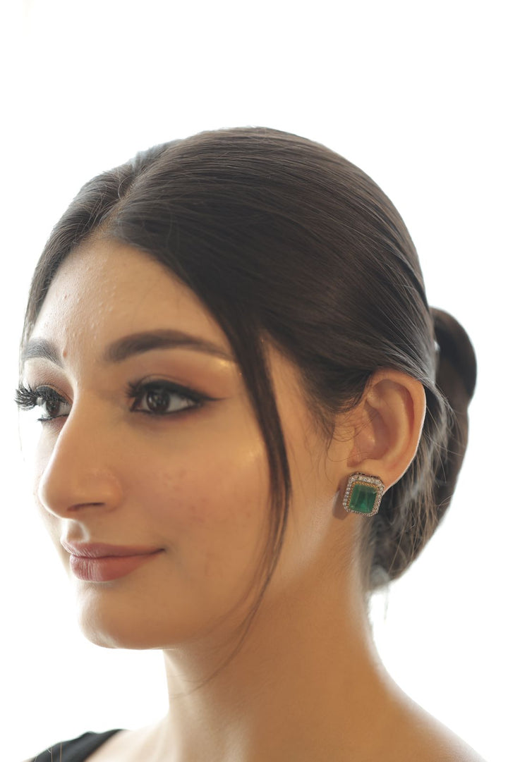 Elevate your look with Aheer, our exquisite emerald earrings. Glistening with luxury and sophistication, these earrings add a touch of opulence to any outfit. The emerald stones exude a regal allure, making these earrings a must-have for any jewelry collection. Indulge in elegance with Aheer.