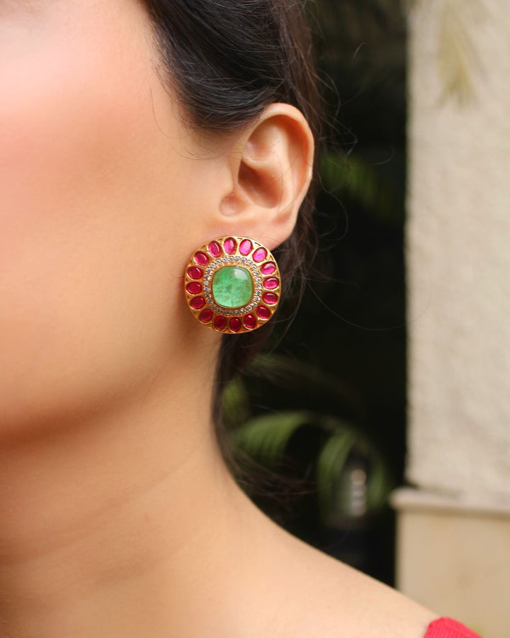 Unleash a touch of elegance with Fidaa. Our uncut polki studs are adorned with semi precious stones, creating a luxurious and exclusive look. Embrace the beauty of artisanal craftsmanship and elevate your style with Fidaa.