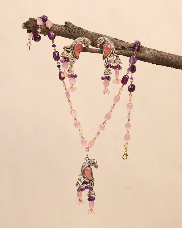Indulge in pure luxury with Parinda, a stunning cubic zirconia necklace adorned with exquisite bird motifs and semi-precious stones. This statement piece is not only a beautiful accessory but also a symbol of elegance and sophistication. Elevate any outfit and leave a lasting impression with Parinda.