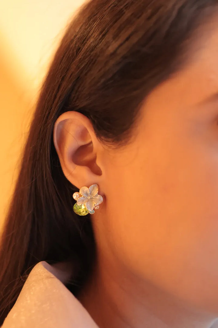 Add a pop of color to your accessory game with Pihu! These anti tarnish flower studs feature vibrant stones and whimsical enamel work, making them perfect for any occasion. No need to worry about dullness or discoloration with Pihu by your side. (Bonus: they make for the perfect gift!)