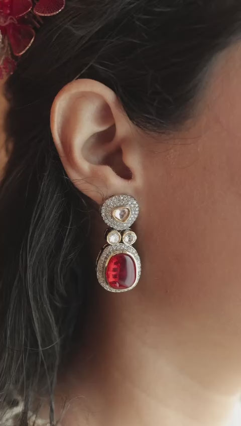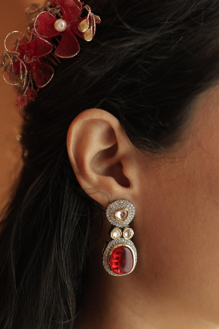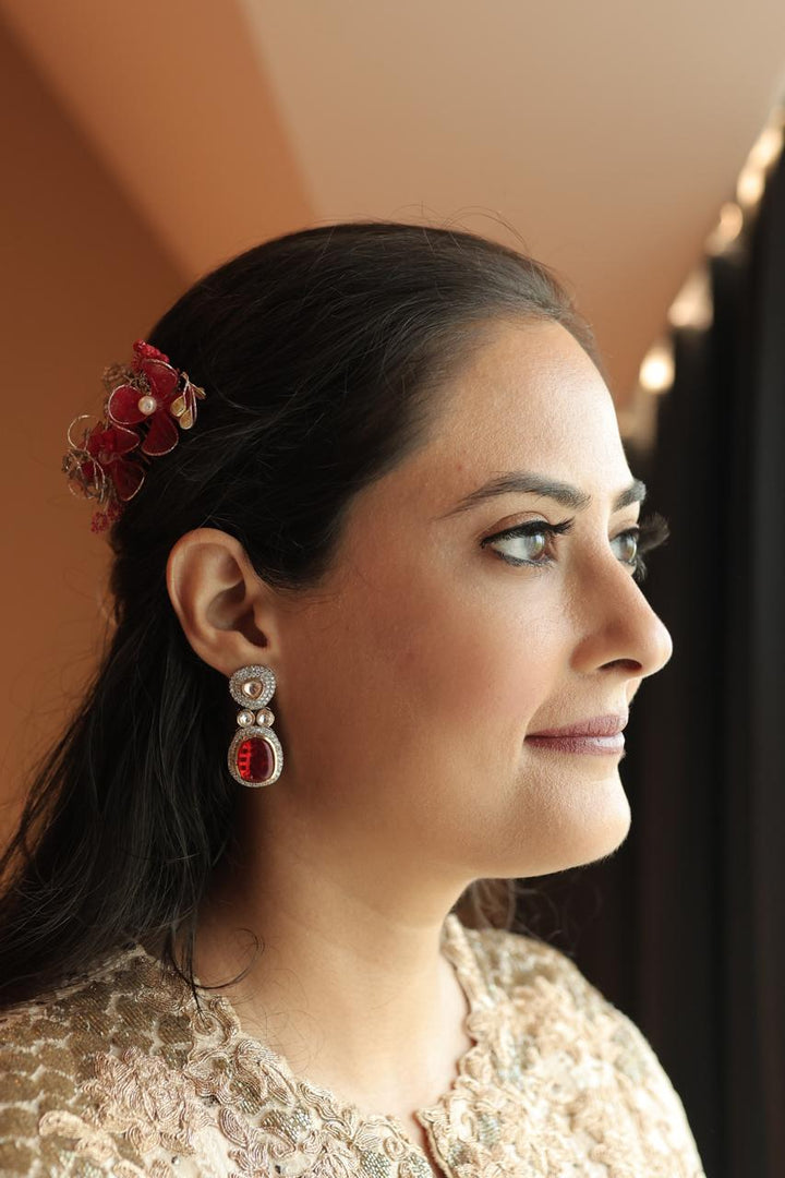 Unleash your bold and adventurous side with Yagni, the perfect statement earrings. Made with kundan, american diamonds, and fiery red gemstones, these earrings will add a touch of risk and excitement to any outfit. Dare to stand out and shine with Yagni!